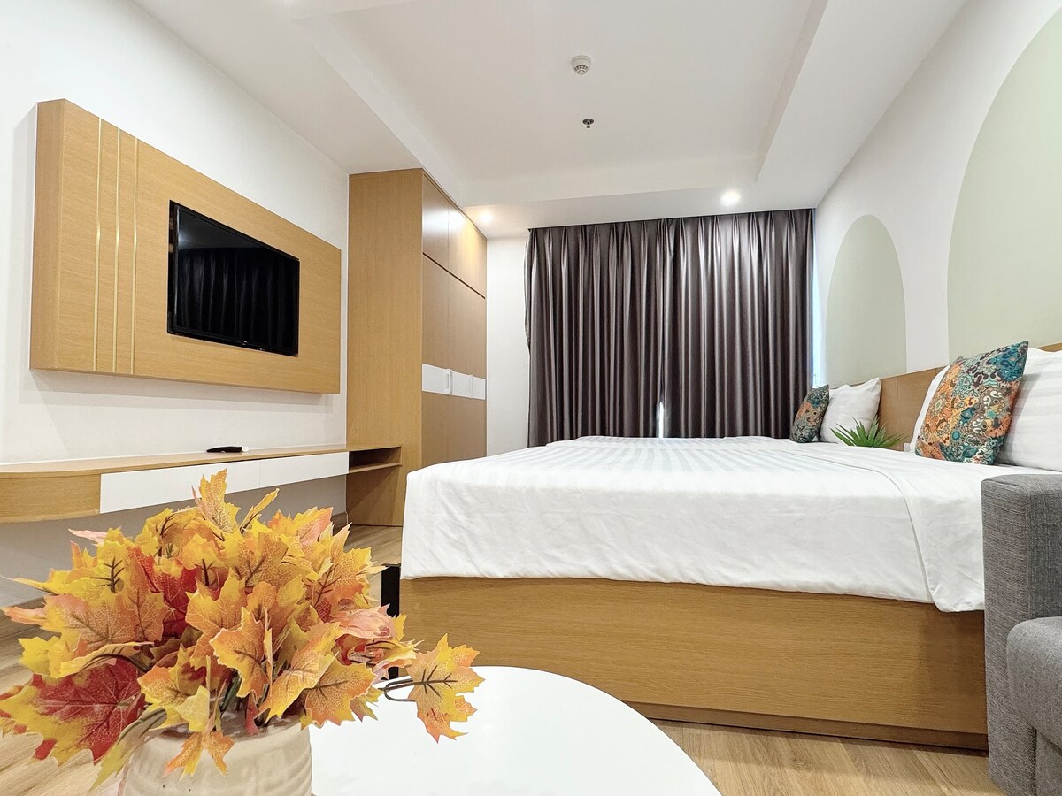 İki yataq otağı və vanna otağı, yüksək mərtəbə, okean, çimərlik, Quy Nhon limanı və körfəz mənzərəsi olan tam əşyalı mənzil. Şəhərin mərkəzində yerləşir, Quy Nhon kilsəsi, Quy Nhon meydanı, Twin Cham qülləsi, Genh Rang turizm sahəsi, Ky Co adası, Hon Kho adası, Eo Gio çimərliyi, Bai Xep çimərliyi kimi Quy Nhondakı məşhur turistik yerlərə yaxındır...