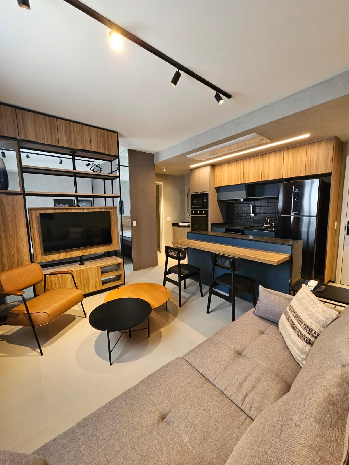 Apartamento funcional, moderno, aconchegante com excelente acabamento; 50m² de área útil; 2 quartos: Quart casal com ar-condicionado e armários; quarto solteiro com bicama, bancada e cadeira giratória, ventilador de teto, é ideal para home office; Sala com Smart TV streaming, Wi-Fi e ar condicionado; Cozinha equipada; Lavanderia com máquina lava e seca e ferro de passar. Ideal para quem busca conforto e praticidade para sua próxima viagem.