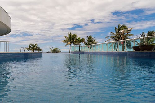 Accommodates 2 guests. Ocean view, in the best location for Carnival, with an outstanding view of the entire Oceanic Avenue all the way to Barra Lighthouse. Modern building featuring a swimming pool, gym, Seven Wonders Restaurant on the ground floor serving a delicious and highly sought-after breakfast (paid separately), mini-market, 24-hour front desk, and stunning architecture. Staying in this unit grants free access to the Blue Praia Bar, one of the best beach clubs in Salvador.