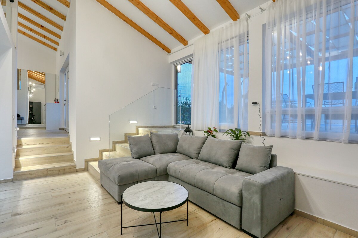 Be one of the first to enjoy this brand - new place set on a unique location directly on the beach. Enjoy the luxury interior in a modern house where you will feel the real essence of Mediterranean. Leave your pandemic stress behind and just enjoy the smell and sound of the sea in a complete privacy. Pamper yourself with vacation you know you deserve..