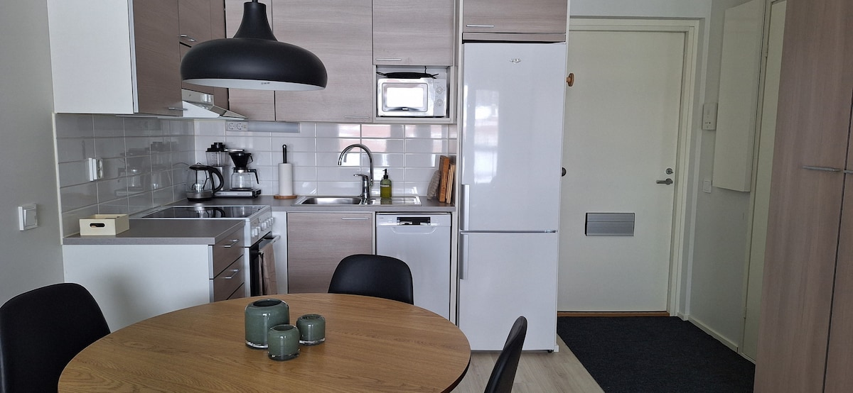Tapiontupa,Launiala rayonunda, Mikkeli mərkəzindən 3,5 km məsafədə dinc və dəbli terraslı bir evdir. 2 km uzaqlıqda Prisma, Citymarket və bir çox digər xidmətlər var. Burada həmçinin şəhər çimərliyində çimərlik həyatından zövq ala və Saimaa gölündə (mənzildən 800 m məsafədə) üzmək olar. Öz sığınacağınız terrasda sauna, çimmək və barbekyu qızdıra bilərsiniz. Qonaqlama yerinə yataq dəsti və dəsmallar daxildir. Avtomobiliniz üçün karportda yer var. Gəlin və zövq alın!