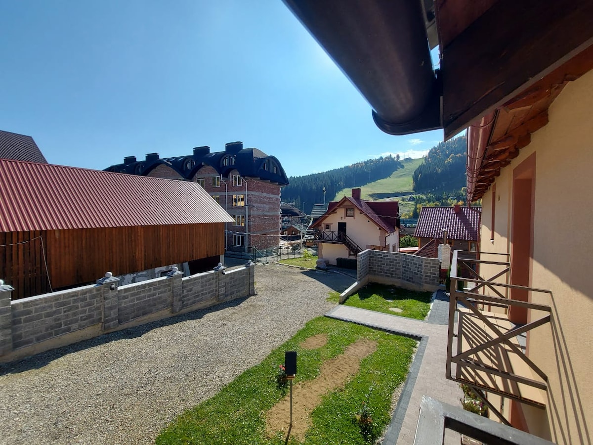 Новий тримісний номер має власний балкон з чудовим видом. У номері є велике двоспальне і односпальне ліжко, власна ванна кімната. плазмовий телевізор, якісне покриття інтернету і надається безплатна стоянка для авто. Також гості мають доступ до спільної кухні на якій можуть самостійно готувати. На відстані 40 метрів є кафе де наші гості замовляють сніданки. В 150 метрах від нас є лижний спуск R1.