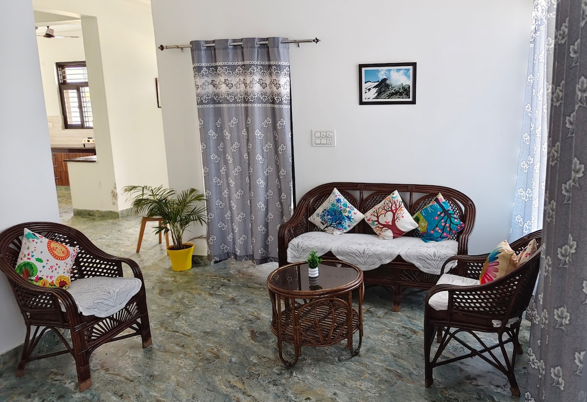 Qonaqlamanızı rahat və yaddaqalan etmək üçün evinin bir hissəsini təmin etmək istəyən Himaçal hökumətinin təqaüddə olan cütlüyü. Şəxsi terrasınızda qəhvə içərkən HPCA kriket stadionunun mənzərəsi ilə gözəl gün batımından zövq ala bilərsiniz. Təbiət, rahatlıq və rahatlığın qarışığıdır. Mənzildə bir yaşayış sahəsi, gəzinti dolabı olan bir yataq otağı, ayrıca hamam və tualet yeri var. Sizə pulsuz avtomobil parkinq yeri təqdim ediləcək. Evin özü birinci mərtəbədə bitki həvəskarı olan ailəyə məxsusdur