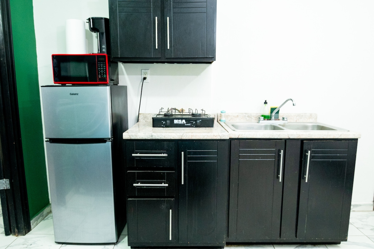 El departamento esta equipado con cocina completa. Incluye refrigerador, estufa y microondas. Tiene sala con televisor con cable. Un baño, y un cuarto amplio con escritorio.