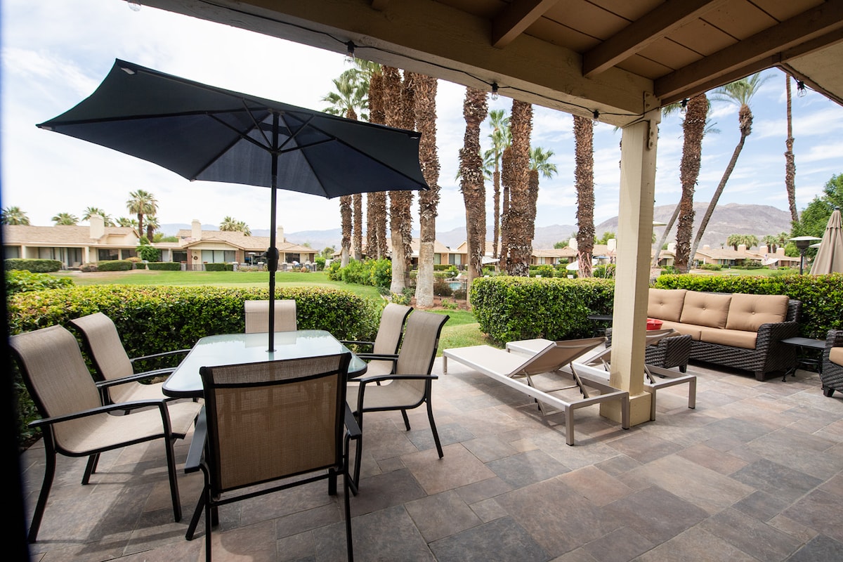 Monterey Ölkəsi Klubunun mərkəzdə yerləşən ayrıca icmasında rahatlıqdan zövq alın. 2018-ci ildə yenicə təmir edilmiş bu 2 otaqlı/2 vanna otağı olan kondominium Palm Desertin mərkəzində yerləşir. Xüsusiyyətlər: Hər iki otaqda çarpayılar. Tam Mətbəx, Qab-qacaq təmin edilir. Qolf meydançasına baxış. Yeni Yuva termostatı və Mərkəzi Kondisioneri sərinləyin. Açıq havada böyük qaz barbekü və verandada 4 nəfərlik masa. 55" Televizor və Wi-Fi. Zen atrium. Böyük əsas çarpayı və vanna/açıq duş və ikili boş yer.
