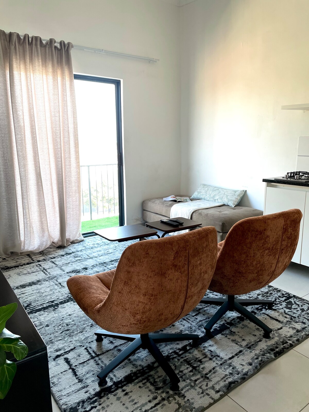 Enjoy the convenience of an integrated inverter that backs up the lights, tv, and Wi-Fi during load-shedding in this elegantly furnished modern apartment. Take in the leafy Bryanston backdrop from an amazing top floor elevation complemented by large window views and a stylish and relaxing contemporary open plan character. Cool off the heat in our sparkling pool at the clubhouse with braai facilities and a co-working area with free Wi-Fi or take a stroll in the treelined neighbourhood.
