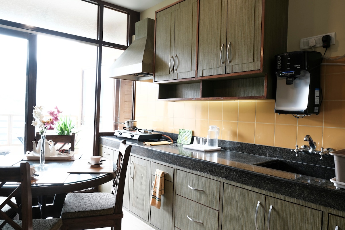 The Cardamom Suite is a unique 2 BHK luxury space that is cozy and comfortable. The large windows let in warm natural light and offer some scenic views of the city. The space is on an independent floor and offers you complete privacy. The kitchen is fully functional and comes equipped with a gas stove, microwave oven, electric kettle, toaster, cutlery and crockery. We have a secured parking space. We can also arrange for curated sightseeing and transfers.We offer great deals for Long Stays