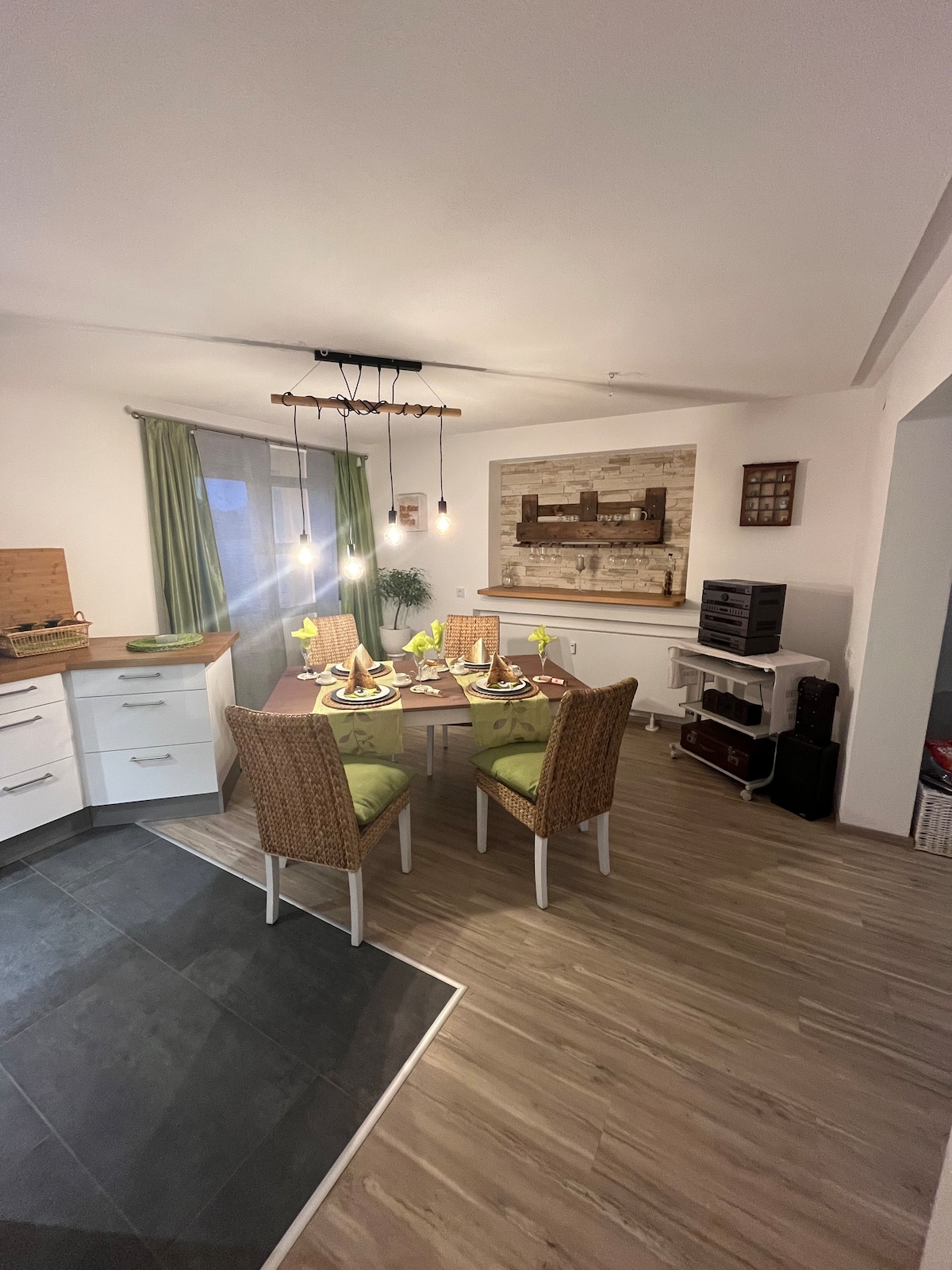 BoHo üslubunda Rhön-də, Langenleitendə Kunstangerdə sevimli mebelli mənzil. Gözəl buxarı ilə təchiz olunmuş romantik mühitdə qalacaqsınız. Gözəl bir kitab və yaxşı bir qədəh şərabla dincəlin. Bu dəbli qalmağa yerdə özünüzdən zövq alın və ya bütün ailənizlə əylənin. Yayda qamaklar, günəş vannaları və barbekü, eləcə də gözəl istirahət zonası olan böyük bağdan zövq ala bilərlər.