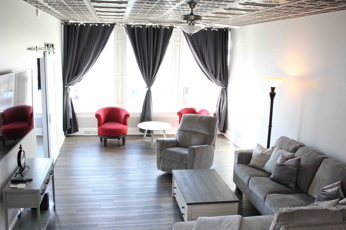 Take it easy at this unique and tranquil getaway. Located above a little fun popcorn shop, this place is newly renovated! Located in the heart of downtown Paxton, IL it puts you close to shopping and restaurants and 10 minutes from the Rantoul sports complex and 30 minutes from the University of Illinois Campus. Arnie’s Place is a perfect place for a couples get away, girls trip, small gatherings, a few nights stay for sporting events, a quiet place to relax and unwind.