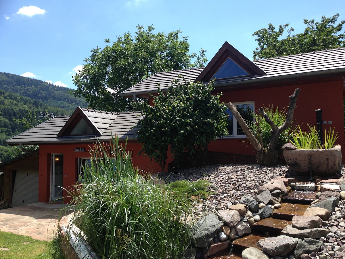 Pour se ressourcer ou profiter en famille. A deux pas des sentiers de randonnée, vous serez séduits par la sérénité des lieux. Vue magnifique sur le jardin de 6000m2, ses deux étangs et la forêt environnante. Maison en bois, lumineuse de 120m2. 3 chambres (deux avec un lit de 180x200 et une triple pour les enfants). Proximité: Col du Donon, lac de Pierre-Percée, à 1 heure de Strasbourg, de la route des vins d’Alsace, et à 1h30 de Colmar.