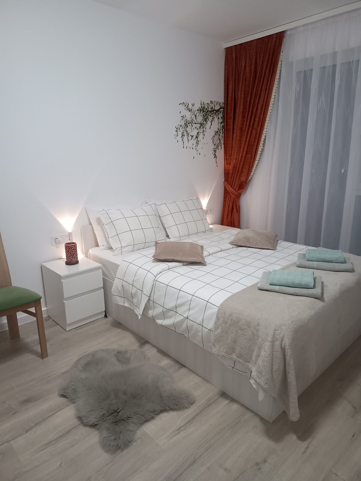 Escape to this peaceful 2 bedrooms apartment in a gated, video-surveilled residential area with underground parking. Just a 10 minute drive from Brasov's vibrant center and scenic Poiana Brasov. Enjoy a garden of 260 mp with green grass, fresh air, and a breathtaking view over the city- perfect for morning coffee or evening relaxation. Families with children and pets are welcome! From the terrace, you might spot cats, deer, and even foxes roaming nearby - nature at your doorstep!