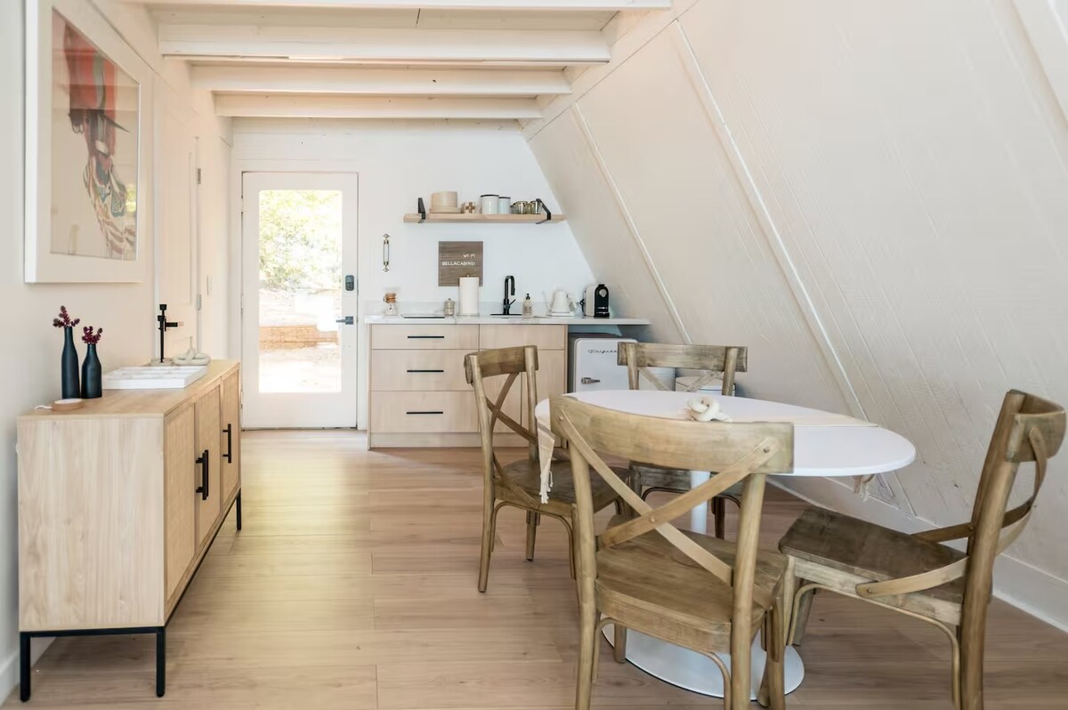 Bu sehrli ağac ev 25 il əvvəl Pit Nelson tərəfindən inşa edilib və bu yaxınlarda onun komandasının köməyi ilə təmir olunub. O, öz kiçik gölməçəsi və fəvvarəsinin yanında, 5 hektarlıq əmlakımızda canlı ağaclarda yerləşir. Burada çanağı və tualeti olan hamam otağı, açıq havada isti su duşu, Wi-Fi, istilik, kondisioner və s. var. Gölməçənin yanındakı qamaklar, qril və ocaqla açıq havadan zövq alın. Alis Gölündən 1 mil məsafədədir, odur ki, avar taxtalarını götürüb gölə yola düşün! Üstəlik, burada olduğunuz zaman səsli şəfa və ya müqəddəs mərasim bron edin.