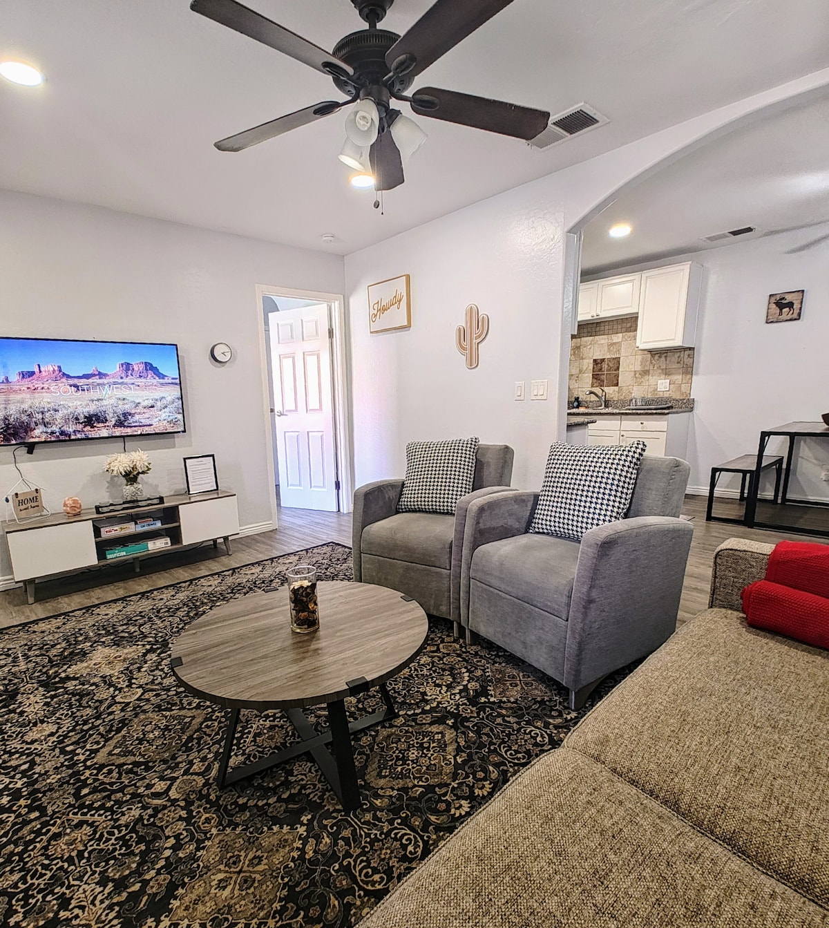 Bura əla mövqe, təbiət və müasir rahatlığı balanslaşdırmaq istəyən qonaqlar üçün gözəl bir yerdir. 3 çarpayı var: 1 kral, 2 kraliça, 2 hamam otağı. Potensial 8 qonaq üçün 2 ehtiyat döşəmə döşəyi də var Qapalı, oyun meydançası və arxa yürüyüş yollarına giriş. Mərkəz vadidə yerləşir; I-10/I-17 və 60-dan bir neçə dəqiqə uzaqlıqdadır. Tempe, Mesa, Scottsdale və Chandler-ə yaxındır. Hava limanından 10 dəqiqə, Finiks şəhərindən 20 dəqiqə, ADU və stadionlardan isə cəmi üç mil məsafədədir.