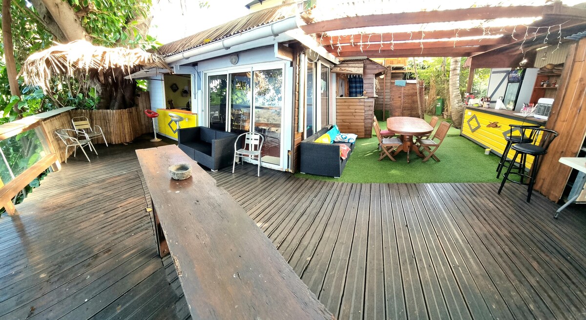Kreol müstəmləkə evimizə bitişik və yamyaşıl bağla əhatə olunmuş füsunkar 30 m² studiyamıza xoş gəlmisiniz. Studiyanın müstəqil girişi və cakuzisi olan açıq havada ayrıca terrası var. Studiya tam təchiz olunub (kondisioner, Wi-Fi, 150-179 sm-lik çarpayı, döşəkağı-dəsmal dəstləri və s.) Sen-Pyer çimərliyindən, eləcə də gözəl Qrand Anse çimərliyindən cəmi 10 dəqiqəlik məsafədə yerləşən studiyamız vəhşi Cənubu (Cilaos, Vulkan, bazar...) kəşf etmək üçün ideal bazadır.