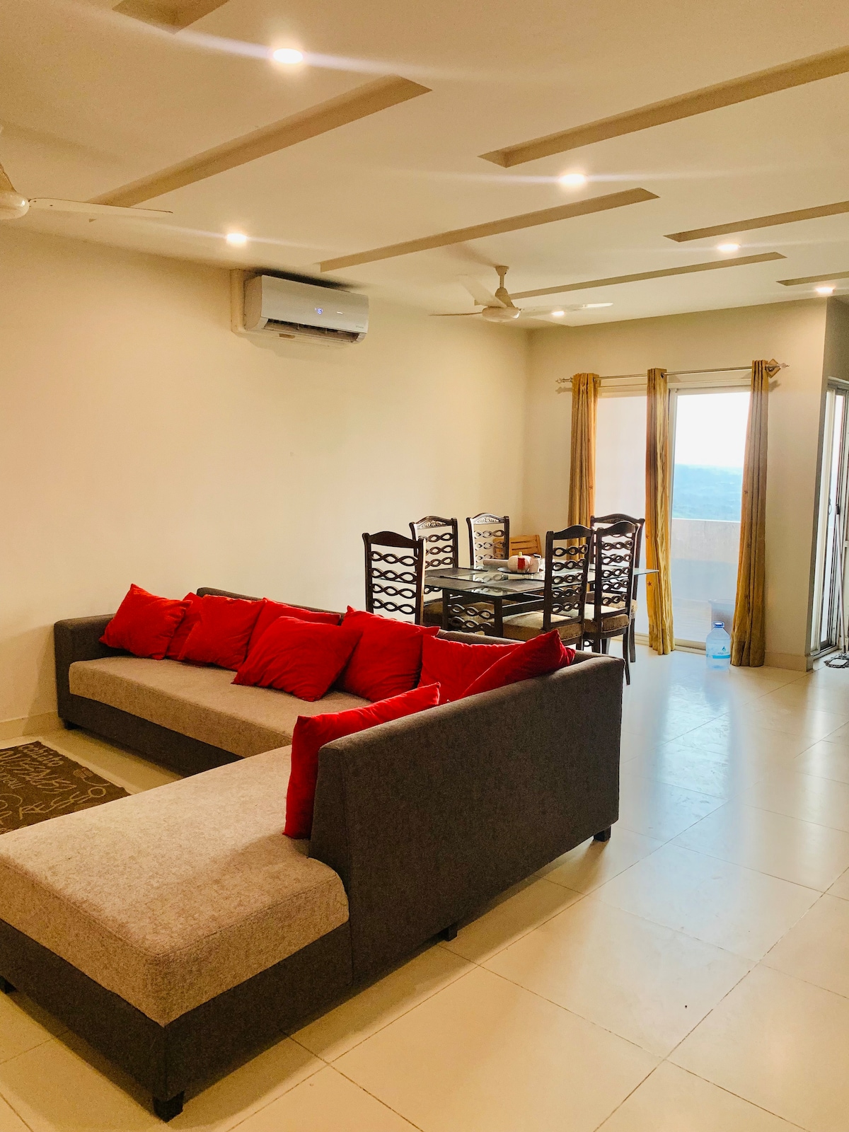 Electricity bill charged seperately based on actual use Bring the whole family to this great place with lots of room & get to be located in the best gated community of the city. -24 Hour Check-in -Daily cleaning -400m Bahria food street -60+ Restaurants around -24/7 Reception & pro hospitality staff -Completely independent -Spacious -Window w/ city view (gets great sunlight) -ACs in Rooms & lounge (heating & cooling) -LED TV -Fully-equipped Kitchen (on req. gas) -No elevator (2nd floor)