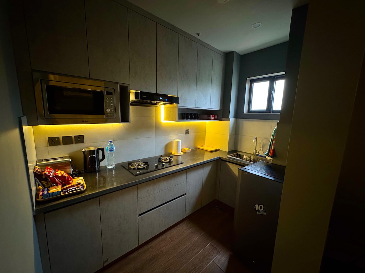 Maskan Dens-ə, evdən uzaqdakı lüks evinizə xoş gəlmişsiniz. Bahriya Taun Faza 8-də yerləşən bu dəbli dizayner 1 yataq otaqlı süita rahatlıq, zəriflik və müasir yaşayış təklif edir. Yüksək sürətli Wi-Fi, Netflix üçün hazır Smart TV və problemsiz öz-özünə girişdən yararlanın. Giga Mall, Amazon Mall və Phase 7 Food Street-dən bir neçə dəqiqəlik məsafədə, 24/7 təhlükəsizlik xidməti olan, qapalı, sakit bir yaşayış kompleksində yerləşir. Ailələr, cütlüklər, peşəkarlar və ya uzunmüddətli qonaqlamalar üçün mükəmməldir. Çatdığınız an özünüzü evinizdəki kimi hiss edin. Unudulmaz qonaqlama üçün indi bron edin.