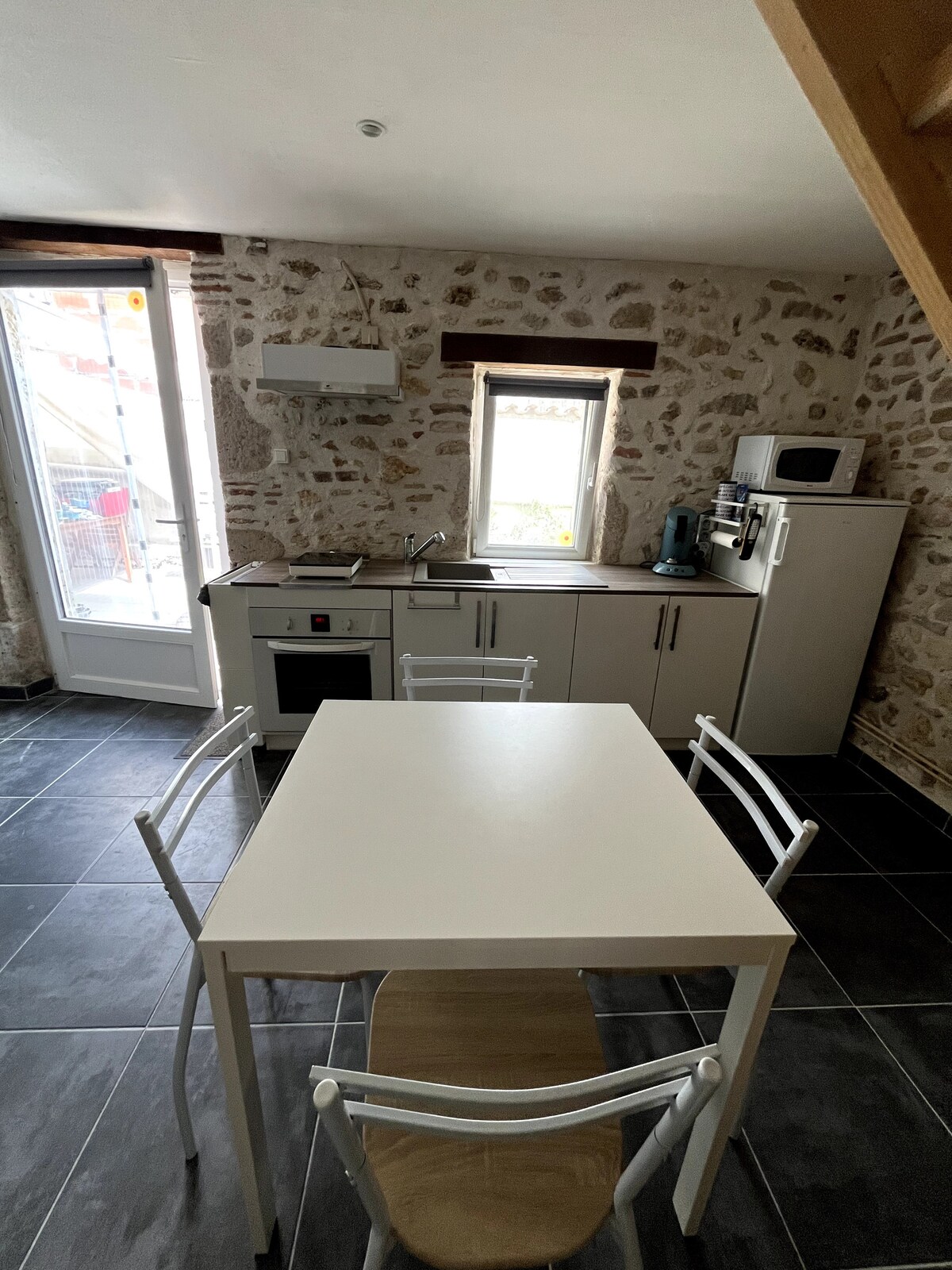 Evimiz 18-ci əsrə aid gözəl daş binadır, tamamilə təmir edilib. Sakit və geniş, hovuzu olan (mart-noyabr aylarında qızdırılır) və ətraf kəndlərin müstəsna mənzərəsi ilə kəndin mərkəzinə dərhal giriş imkanı da təklif edir. Mağazalar, barlar, restoranlar, ərzaq mağazası, market və hətta kinoteatr bir neçə dəqiqəlik məsafədədir.