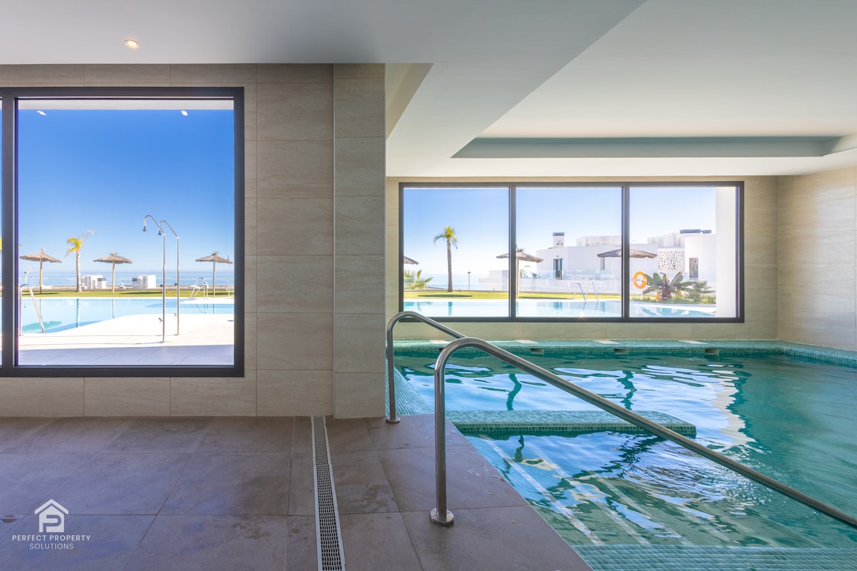Çoxlu saxlama yerinin daxil olduğu 2 yataq otağı və 2 hamam otağı olan mənzil. Pəncərələr üçqat şüşəlidir, odur ki, məkanda çox sakit atmosfer var. Geniş terras çimərliyə və palma ağaclarına açılan gözəl mənzərəsi olan çöldə gözəl istirahət yeri təmin edir. Wi-Fi olan masası var. Qeyd etmək vacibdir ki, bu mənzildə qış ayları üçün praktik olan döşəmə istilik sistemi də var. Bu, çimərliyə və ya Sotoqrande limanının mağaza və restoranlarına piyada 5 dəqiqəlik məsafədədir.