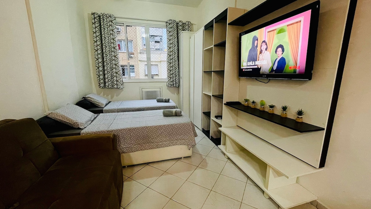 Já imaginou acordar com vista para a praia a poucos passos de um mergulho no mar? ✅ Diferenciais que os hóspedes mais amam: Vista lateral para a praia, bem ventilado, sol da manhã 🌅 Espaçoso e impecavelmente limpo✨ Garagem no prédio, qualquer 🚗 Só 180m da 🏖️do Leme/Copacabana Farto comércio&transporte🍻 Portaria 24h e monitoramento por câmeras👮🏻♂️ Perfeito para quem quer tranquilidade e praticidade sem abrir mão do agito de Copacabana👯♂️ 📌 Leia as regras da casa antes de reservar 😉