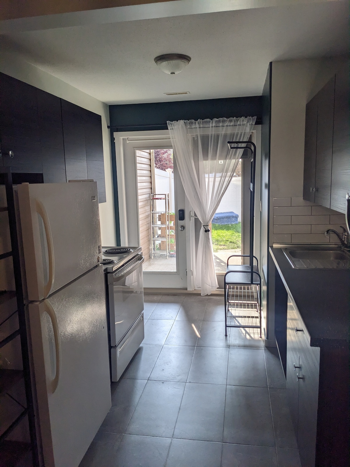 KING SUITE***Cozy 1-bedroom king suite- completely separate entrance, new build construction with private yard and cement patio, off-street parking with a plug-in for winter season. Features a king bed w/blackout blinds & queen sofa bed with luxury duvet beddings, full kitchen and washer/dryer. Enjoy in-floor heating throughout and 9-foot ceilings, creating a bright comfortable space perfect for privacy and relaxation. **** some days there is potential for noise transfer from the main dwelling