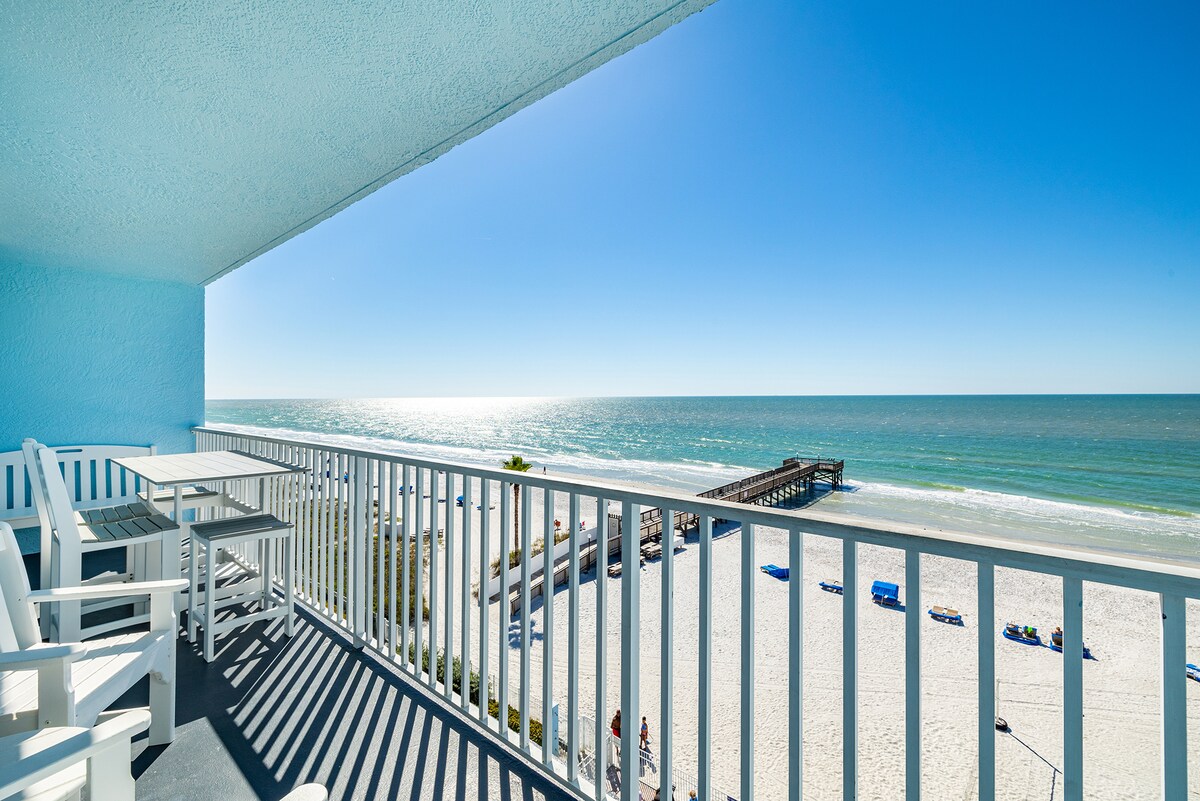 Sahilyanı görünüşü olan, yenicə yenidən qurulmuş çimərliyə yaxın kondominium. Bu heyrətamiz kondominiumda parlaq rənglər, çimərliyə xas elementlər və okeanın panoramik mənzərələri olan müasir sahil dekorasiyası var. Bu möhtəşəm kondominiumda dəniz mənzərəsi və heyrətamiz gün batımından zövq almağa imkan verən ayrıca balkon var. Clearwater və St. Pete arasındakı mərkəzi mövqe yaxınlıqdakı restoran, mağaza və əyləncə seçimlərinə asan giriş imkanı təmin edir və buranı istirahət və istirahət üçün mükəmməl çimərliyə yaxın istirahət məkanına çevirir.