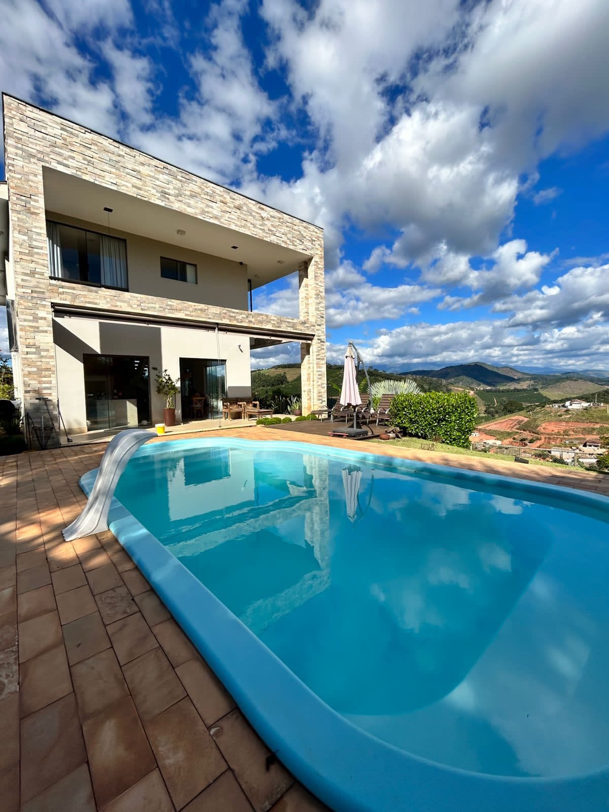Lindo chalé no bairro Roque em Manhumirim, com 3 quartos, piscina, área grande de festa com churrasqueira e grande área de jardim. Chalé localizado a 3 minutos do centro e 3 do trevo de Manhumrim. Perfeito para quem está passeando na região. 25 minutos até Manhuaçu, 15 minutos até Alto Jequitibá e 30 Minutos do Alto Caparao. Pessoal vamos fazer o máximo pra fazer sua estadia agradável, se tiver dentro da possibilidade vamos tentar fazer ou corrigir!