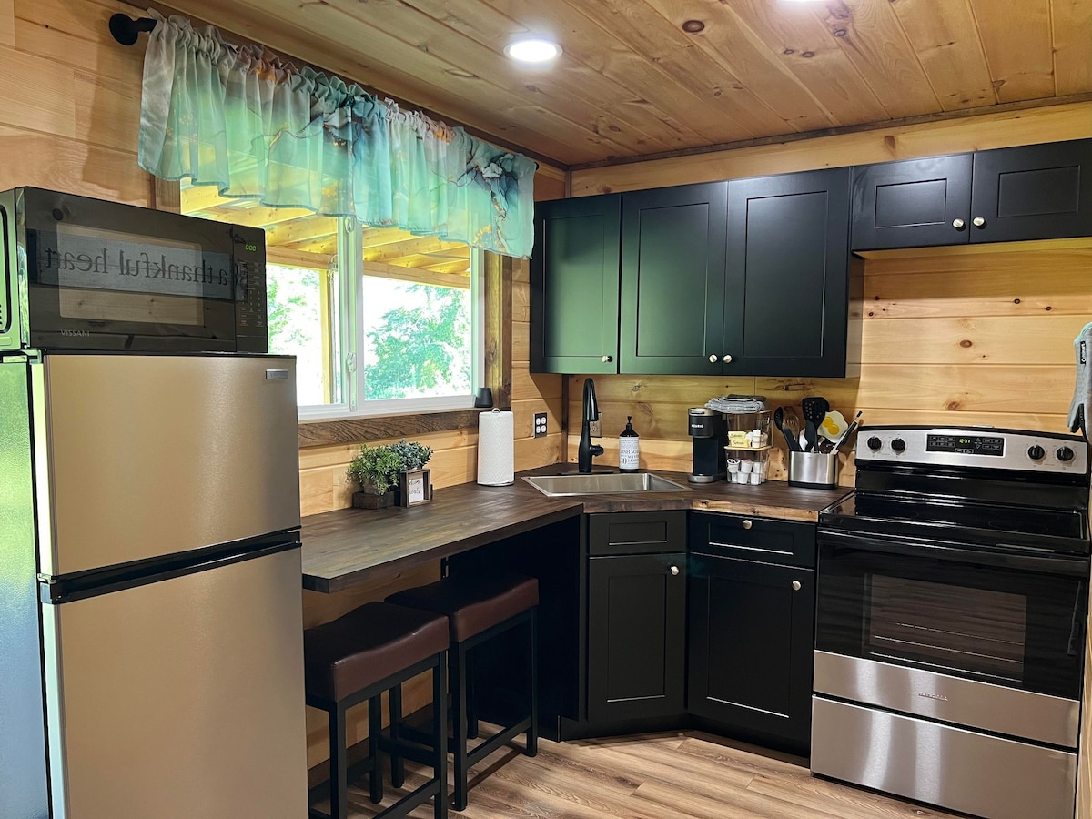 Meşədə yeni tikilmiş kabinə! Özünüz üçün bütün yer. Ohayo Universitetindən 2 mil məsafədə. Tam mətbəx, mikrodalğalı soba, kraliça ölçülü çarpayı, soyuducu, Wi-Fi, Netflix ilə televizor, ərazidə pulsuz parkinq! Çöldə oturub istirahət etmək üçün gözəl eyvan! Səhər yeməyi üçün nəzərdə tutulmuş yulaf paketləri.