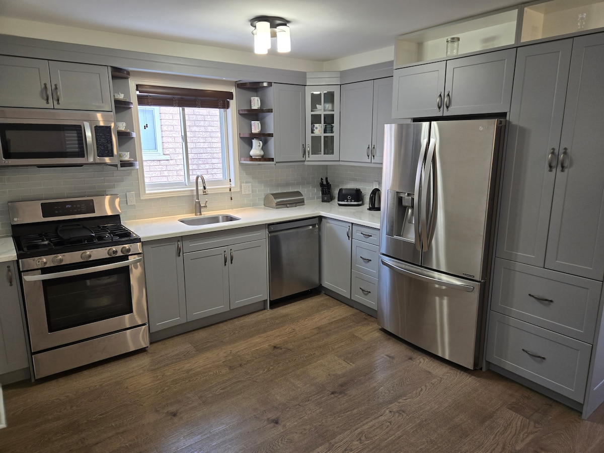 Bu dəbli və rahat 2 yataq otaqlı ev rahat qonaqlama üçün ehtiyacınız olan hər şeyi təklif edir. Məxfilikdən, tam təchiz olunmuş mətbəxdən və ağıllı televizor və ildırım sürətli Wi-Fi olan geniş otaqlardan zövq alın. Ailələr, kiçik qruplar və ya işgüzar səyahətçilər üçün ideal olan süitamız düşünülmüş imkanlara malik müasir dizayna malikdir. 401 avtomagistralından kənarda, Toronto və Niaqara şəlalələrindən qısa məsafədə rahat yerləşir. Rahatlıq, lüks və mövqenin qarışığı üçün indi bron edin!