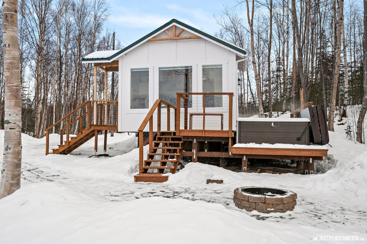 Bu yeni inşa edilmiş müasir A-Frame unikal və dəbdəbəli qonaqlama imkanı təklif edir. Burada xırda döşəkağılar, açarsız giriş, paltaryuyan və quruducu, qaz buxarı, televizor, WiFi, cakuzi və böyük pəncərələri olan rahat kral çarpayısı var. Beləliklə, sakit meşə ilə əhatə olunmuş gözəl Alaskan mənzərələrini seyr edə bilərsiniz. Mətbəx və hamam otağı özünüzü evdəki kimi hiss etməyiniz üçün lazım olan hər şeylə təmin edilib. Şəxsi qaçışınız zamanı rahat və rahat atmosferdən zövq alın.