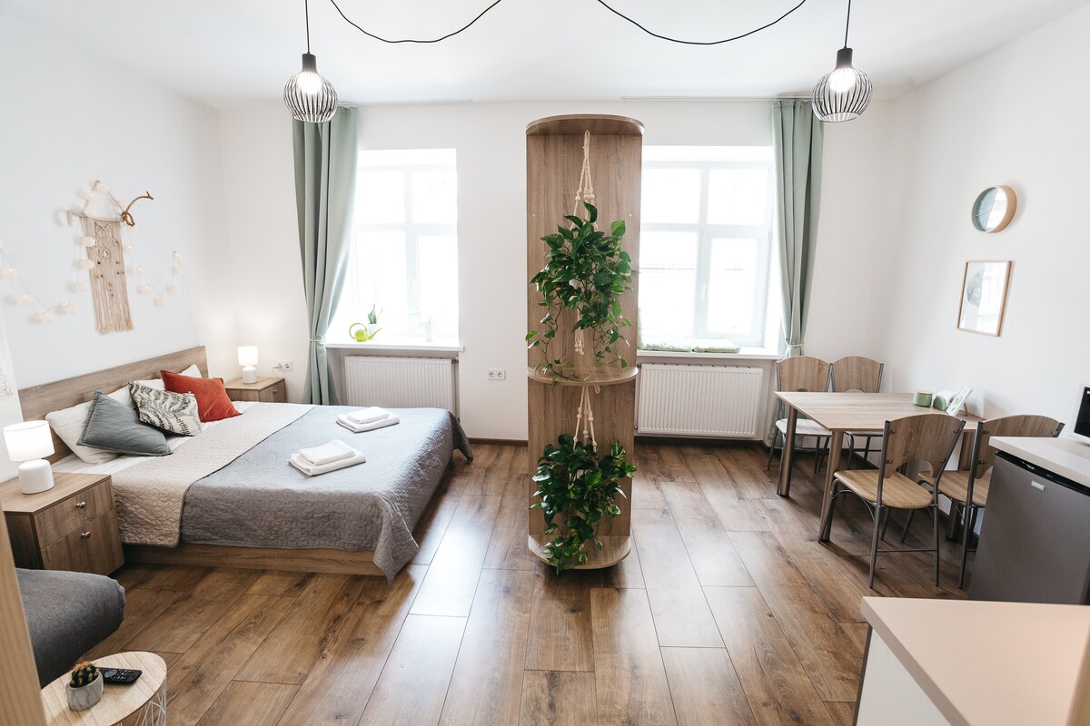 New apartment in the heart of the city located on a quiet street will allow you to relax despite the noise outside the door. The room has everything you need even for your long stay: fitted kitchen, refrigerator, induction hob and everything you need for cooking ,washing machine with dryer,internet and smart tv.Near restaurants,entertainment venues,cathedral,aquarium. Wellcome🩵💛