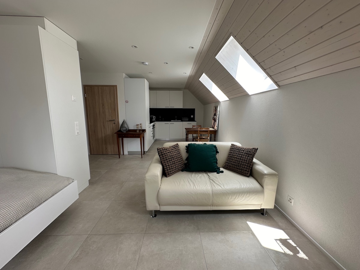 Yeni 70 m2 mənzil, rahat və işıqlı. Sahiblərin evinin birinci mərtəbəsində yerləşən parkinqiniz və açıq hava məkanınız var. Sakit və sakit bir yerdə, Chasseral-a yaxın (Neuchatel və La Chaux de Fonds arasında) yerləşən yer təbiətsevərlər üçün idealdır. Bugnenets Xizək Resort təxminən 10 dəq Ev heyvanları qəbul edilə bilər