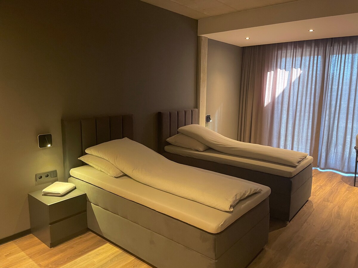 Ayrıca hamam otağı və infraqırmızı saunası, ayrıca Spa və sağlamlıq sahəsi (əlavə olaraq bron edilə bilən) olan eksklüziv və müasir avadanlığı olan bu xüsusi ikinəfərlik otaqda dincəlin