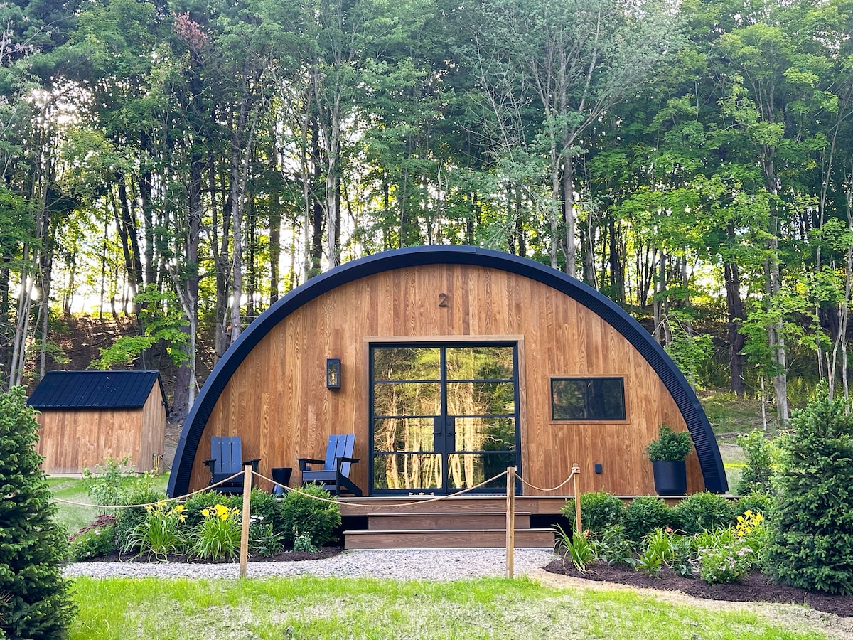 See more of us on Prime Video's tv show, June Farms... streaming now! June Farms is like no place else on earth! "My New Happy Place" is a comment we hear quite often. Pamper yourself in our newest luxury property at the farm, our Wellness Hut. Built out of converted agricultural Quonset Huts, each cabin has a dry/wet sauna, soaking tub, optional cold plunge, outdoor shower, radiant heat/AC, and king bed.