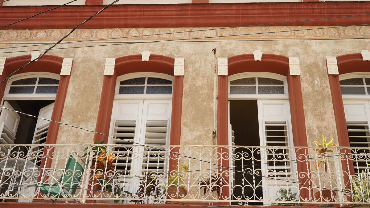 Qonaqlar üçün ayrıca açarı olan evimizin 2-ci mərtəbəsində ayrıca girişi və 24 saat WiFi olan otaqda 2 çarpayısı olan 3 nəfərlik 1 otaq, isti/soyuq suyu olan ayrıca hamam otağı, kondisioner, mətbəx, ayrıca açıq terras və üzüm tutacağı ilə örtülmüş ayrıca vanna otağı var. Şəhərimizin sakit bir məhəlləsində, Heredia Teatrının qarşısında və Plaza de la Revolucióndan, həmçinin La Gran Piedra Ticarət Mərkəzindən təxminən 200 m məsafədə yerləşir.