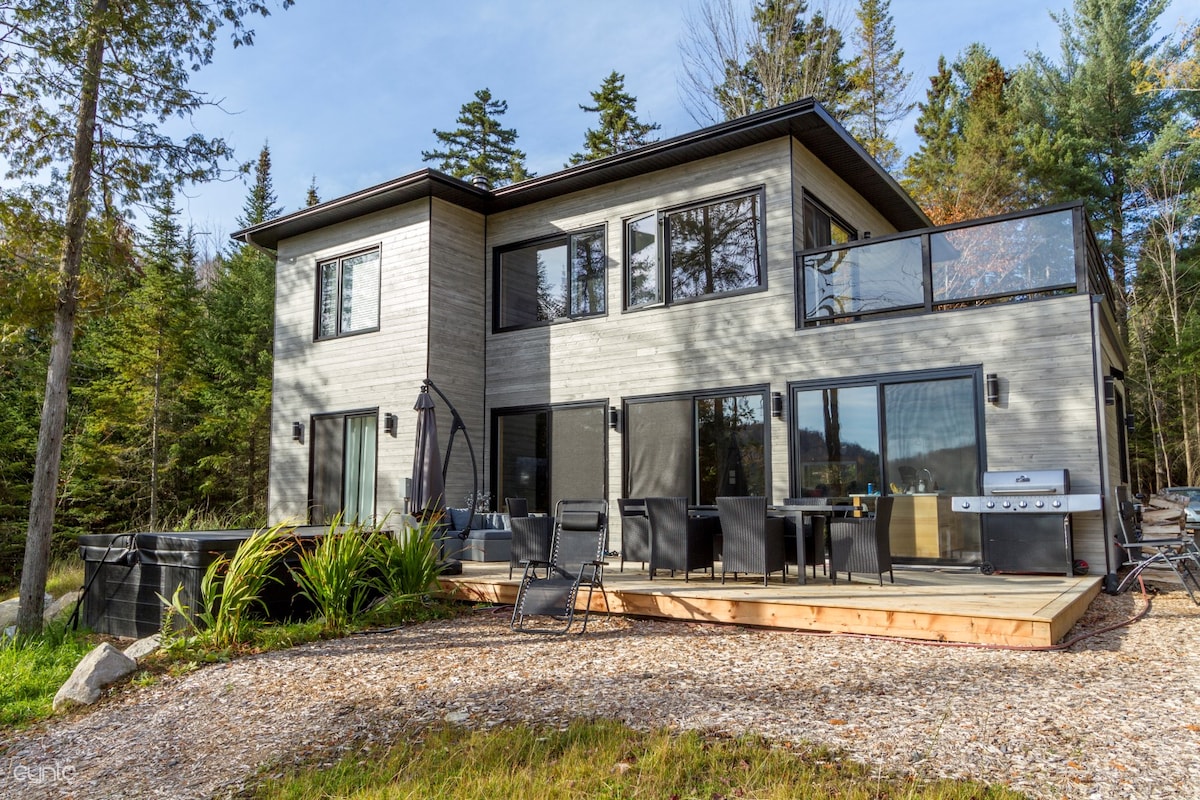 Welcome to our spacious and warm chalet Aux 4 Foyers! Here, your vacation will be full of rest ♪ ✧ Located only 60 minutes from Montreal ✧ Relaxation spa with a view of the lake! ✧ Fully equipped kitchen with a huge island and breakfast area. ✧ Work space, ideal for teleworking ✧ Indoor gas fireplaces + Pellet ✧ Outdoor Patio Heater ✧ Outdoor wood fireplace in summer