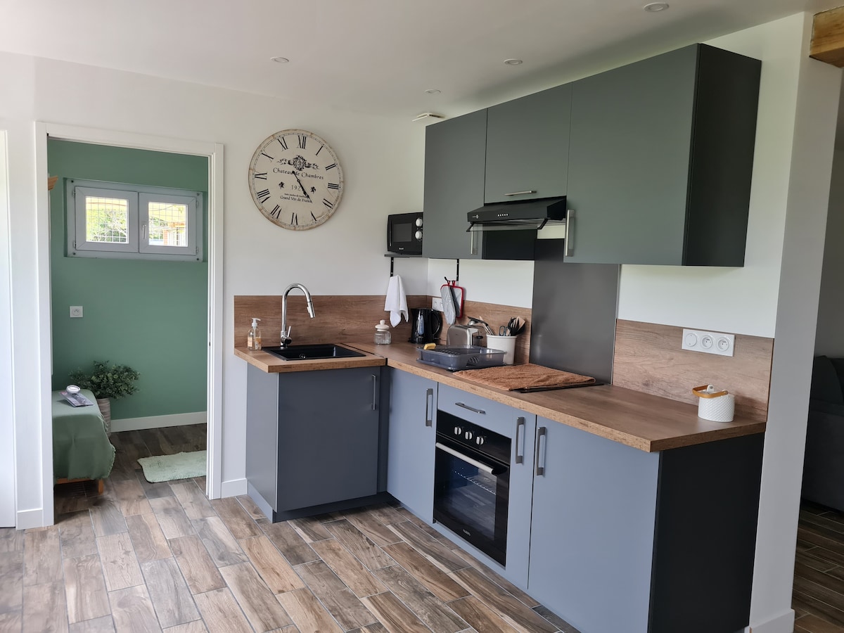 ✨ Équipements à disposition : Cuisinière/four , réfrigérateur , combi grill/micro-onde. Vaisselle et ustensiles de cuisine. Salle de bain privative (douche 70x70cm , lavabo, wc). Lit double 160x190cm. Table et chaises. Non fumeur. Logement mitoyen avec ma maison , voyageur calme et discret exigé. Jardin 5000m2 non clôturé . Arrivé autonome possible ou présentation du logement. 📍 Accès indépendant par escalier extérieur.