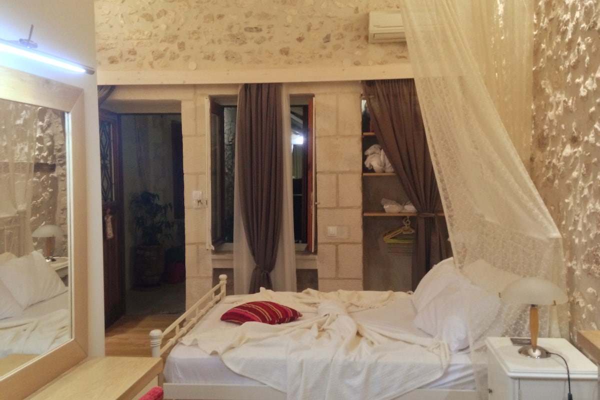 Harmony-də qonaqlayın - I otaq Cütlüklər və ya tək səyahətçilər üçün rahat qonaqlamadan zövq alın. 3 qonağı rahat King-Size çarpayısı və divan-çarpayı (1,50* 1,80) , canlı küçələrə baxan ayrıca balkon ilə qonaqlayır. Çimərliyə, mağazalara, kafelərə və restoranlara yaxın, Çimərliyə və magistral yola yaxın ərazidə yerləşir. Kənd təsərrüfatı təchizatı mağazası mənzillərin aşağısında yerləşir və yaxınlıqdakı avtomobil yolu Kritdə asan girişə imkan verir. Nəzərə alın ki, qonaqlamanız zamanı yük maşınlarından və ya nəqliyyatdan bəzi səs-küy yarana bilər.