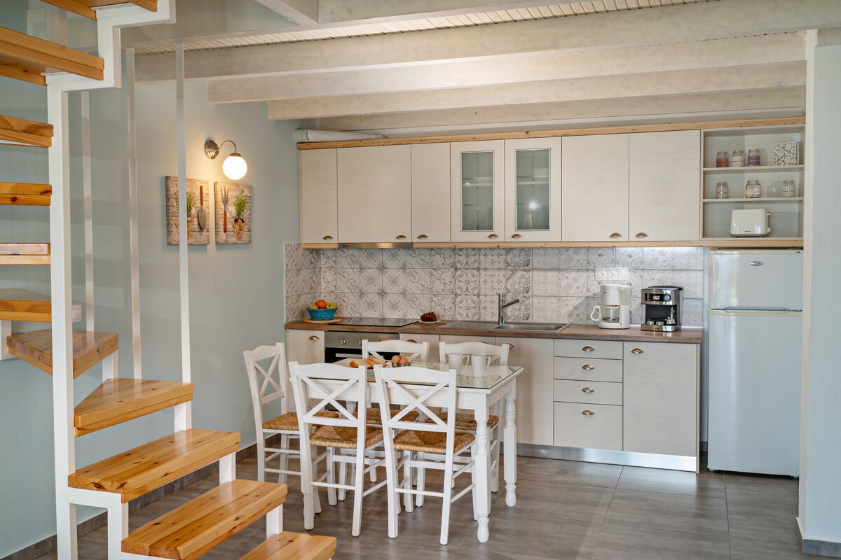 120sq.m. Plakias Körfəzinin panoramik dəniz mənzərəli terraslı bağı olan Alianthos maisonette masa, stul və günəş çarpayıları ilə təchiz edilib. Açıq planlı mətbəx/ qonaq otağı birinci mərtəbədədir. Ultra müasir ailə hamam otağı da birinci mərtəbədədir və kabinəsi, tualeti və əl hövzəsi olan duşu var. İki yataq otağı yuxarıdadır. İkinəfərlik çarpayısı olan əsas yataq otağında geniş hamam otağı var. İkinci yataq otağı ikimərtəbəlidir.