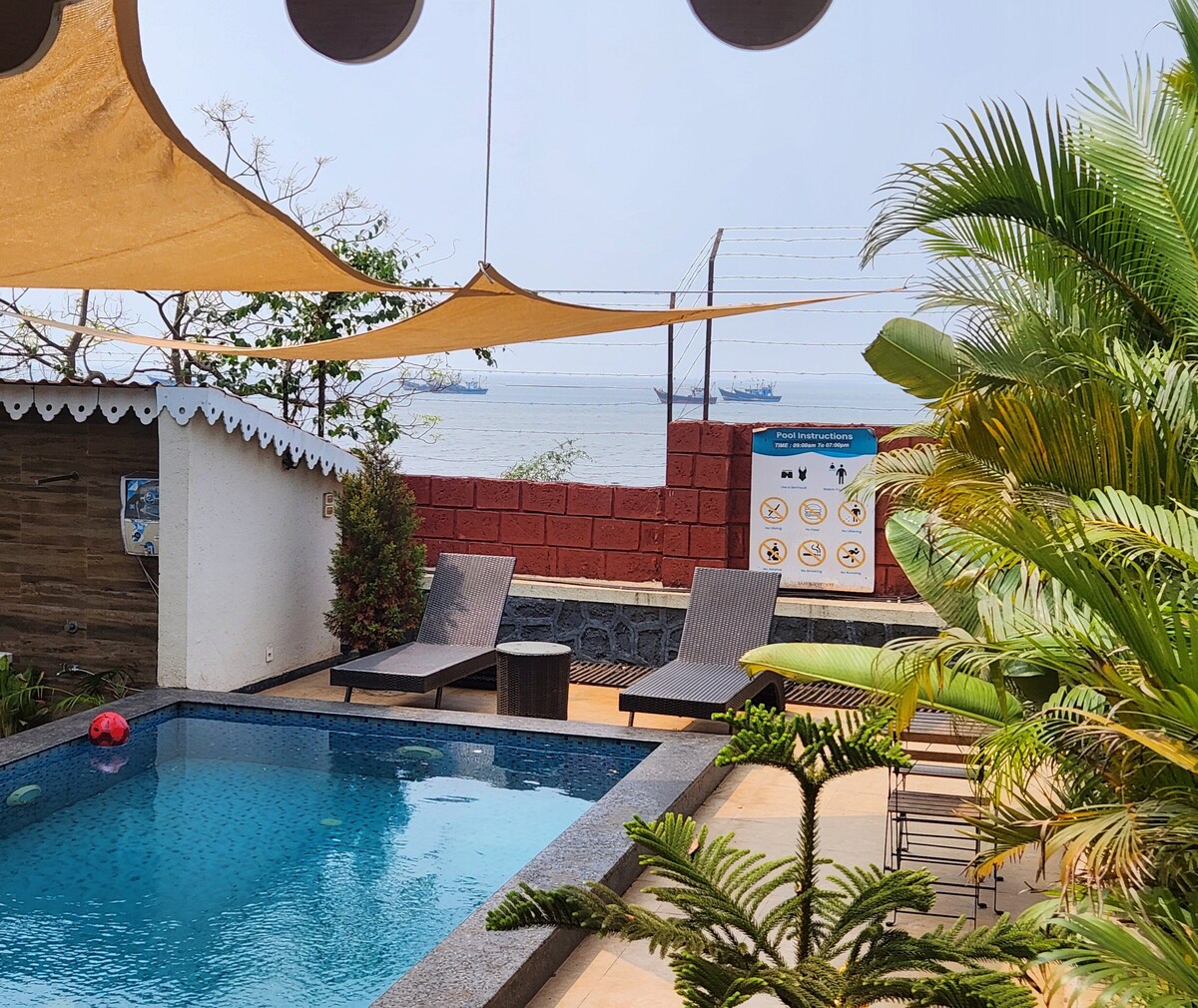 Large 1 bedroom + living room villa, sleeps 4, ocean views from every room, sunbathe or lie on hammocks under a canopy of coconut trees, enjoy fresh coconuts from our trees, home-cooked meals, breezy weather, star-lit skies, and a secluded beach. Visit the Murud fish market for fresh catch, explore Creole ruins at Revdanda fort (20 mins drive), or rent cycles or banana boats and explore Nandgaon village. Ideal for families, couples, or reunions. Available with a cook, cleaner, gardener.