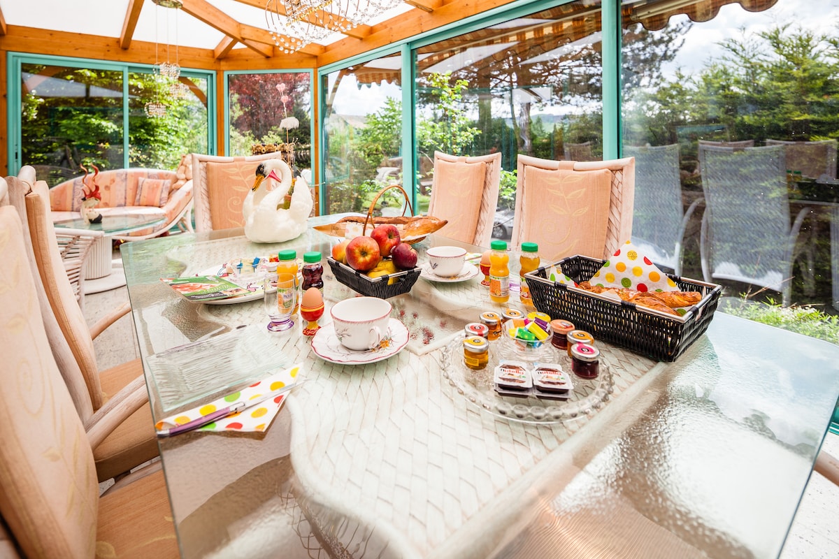 🌷 Découvrez cette charmante maison individuelle, nichée au cœur du parc naturel des Vosges du Nord, idéale pour un séjour apaisant et ressourçant, jusqu'à 4 personnes. Vous profiterez d'une totale indépendance grâce à une terrasse privative en bois, entourée d'espaces verts, parfaite pour savourer des moments conviviaux en plein air. La maison située derrière notre habitation familiale, garantit calme et intimité.