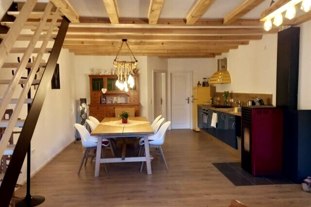 Gözəl köhnə qumdaşı evindəki mənzil 2021/22-ci illərdə təmir edilib və sevərək və rahat mebellə təchiz edilib. Təxminən 90 kvadrat metrlik geniş mənzil tətildə heç bir imkandan imtina etmək istəməyən ailələr, istirahət edənlər və ya sadəcə qonaqlar üçün kifayət qədər yer təklif edir. Mənzil mərkəzdə Bürgstadtın mərkəzində yerləşir: çörəkçi, qəssab, dondurma salonu, restoranlar və idman meydançaları gəzinti məsafəsindədir. Mənzil paltaryuyan maşın, oyun sahəsi ilə tam təchiz olunub