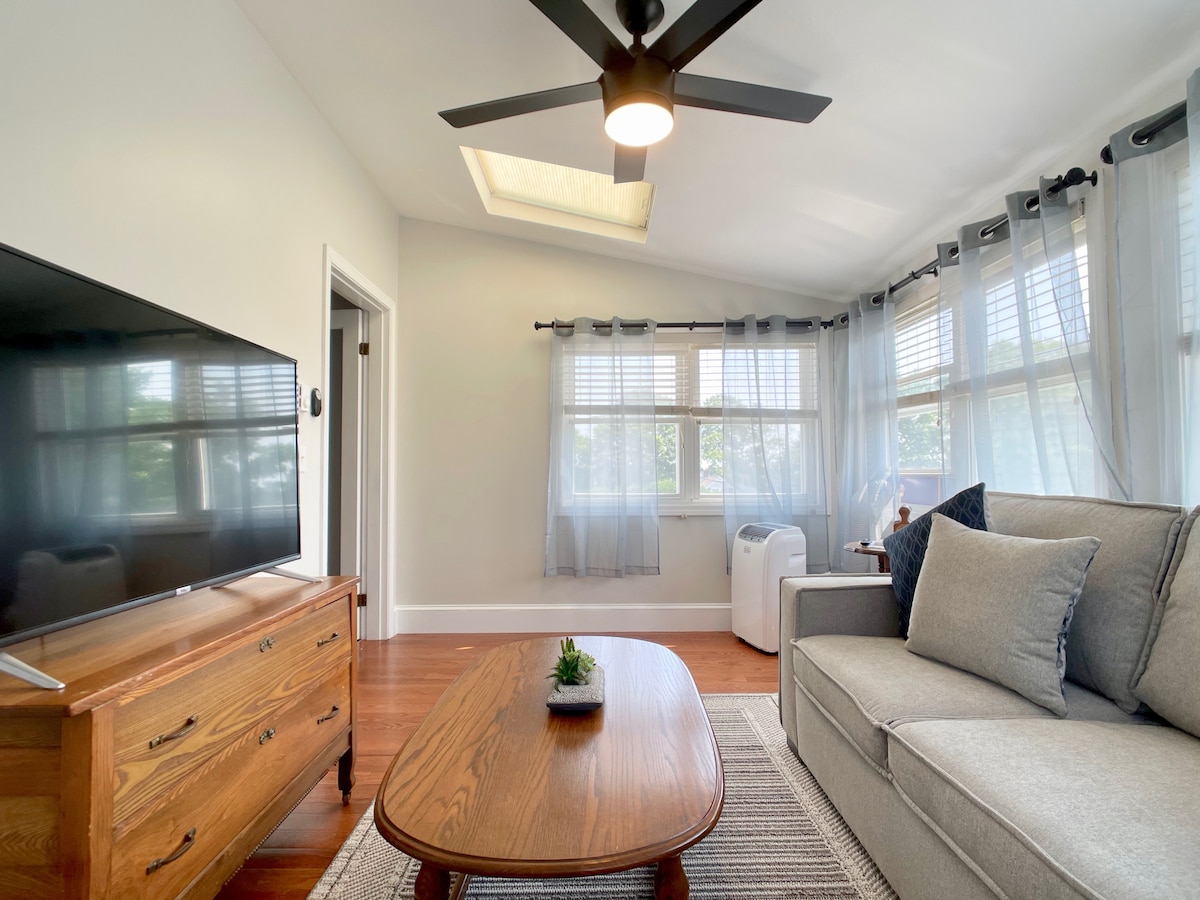 Hər yerə piyada gedin! Bristol Tarixi Evimə və yuxarı mərtəbədəki 65 kvadratmetrlik kilidli süitaya sürətli ortaq giriş. İki queen ölçülü çarpayı, böyük qonaq otağı və hamam! Keurig, qəlyanaltılar, soyuducu, Ağıllı TV. Wİ-Fİ. Şarj cihazları. Saç feni. Tualet ləvazimatları. Ayrıca avtomobil yolu. Sahilyanı restoranlara, çimərliyə gedin. Rahat xalatlar. Sakit arxa həyət. Bala itim Mörfi birinci mərtəbədə və arxa həyətdə də qaçır, ona görə də o, sizi sevinclə qarşılayacaq! YALNIZ 1 BR LAZIMDIRSA: https://HTTPS://AIRBNB.COM/H/BRISTOL-COLONIAL