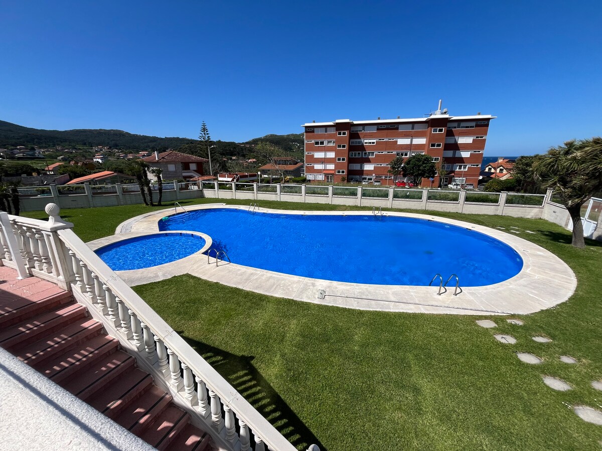 Dənizin qarşısında səhər yeməyi qəbul etməyi düşünürsünüz? Okeanla ayaqlarınızın altında dincəlmək istəyirsiniz? İstənilən vaxt çimərliyə enin və ya şüşəli eyvandan və ya bağçadan mənzərələrdən zövq alın? Mavi bayraq Praqaira/Mayor çimərliyindən cəmi 100 m məsafədə bu yerin valehedici mənzərələri və qürubları olan az yer var. Hətta delfinləri də görə bilərsiniz. Bu imtiyazdan il boyu zövq almaq üçün çöldə mətbəx, barbekü və şüşə yeməkləri var. Rias Baixas ilə tanış olmaq üçün əla yer.