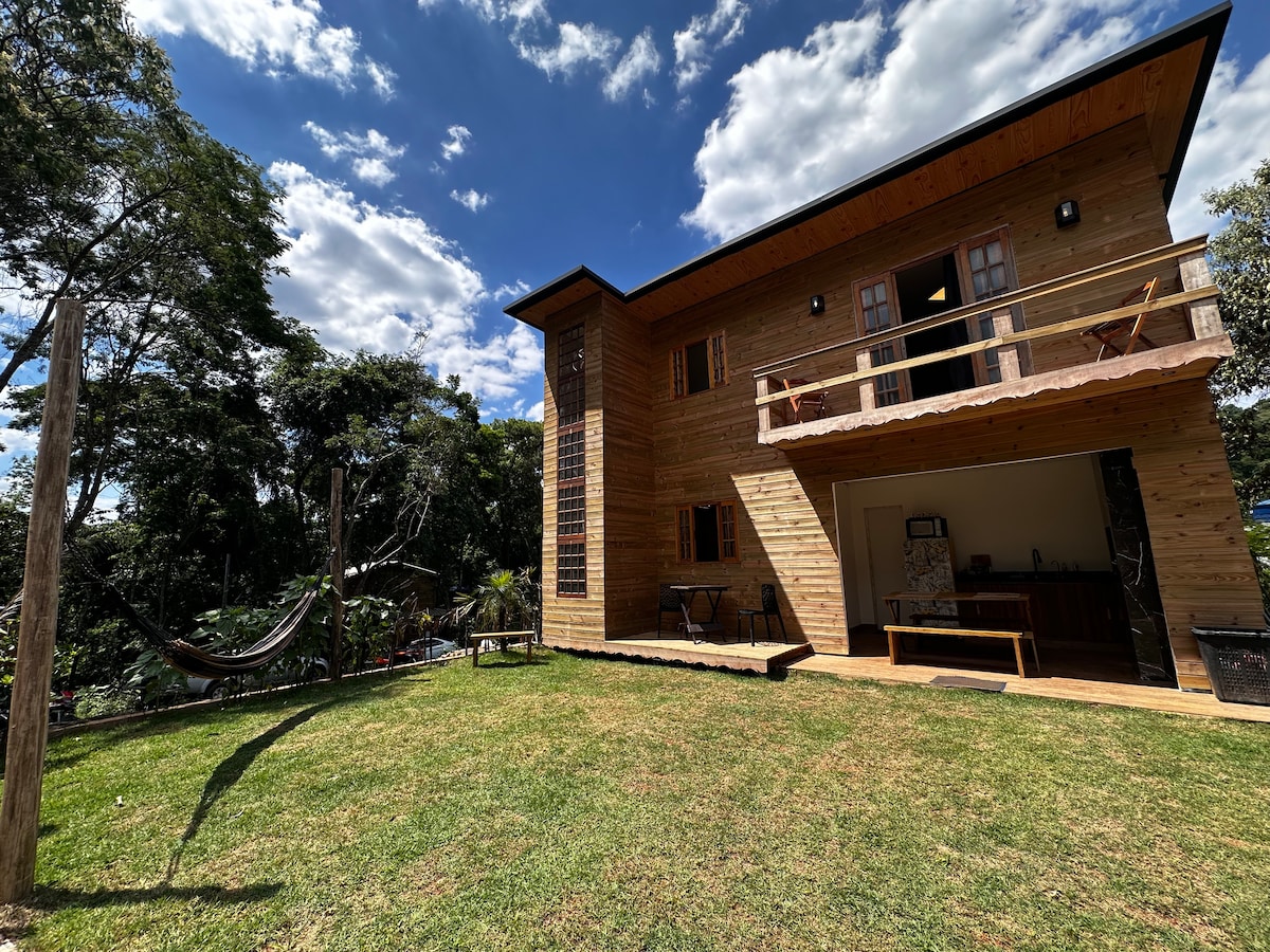 Mairiporã/SP şəhərində qapalı İCMADA yerləşən Lindo rahat dağ evi. Paytaxtdan 50 dəqiqəlik məsafədə. Burada əmlakı kəsən, xarici dünyadan bölgəyə səfər edən saysız-hesabsız quşların və yerli heyvanların səsi ilə əlaqəni kəsən ekranın səsini eşidə biləcəyiniz treetopsun gözəl mənzərəsi var. Dördayaqlı uşaqları olanlar üçün: asan istirahət edə bilərsiniz, çünki məkan hasarla əhatə olunub və bağlıdır😊