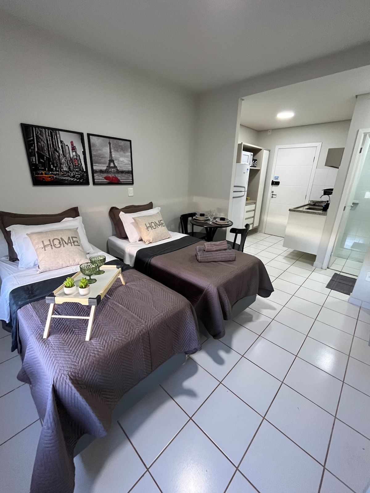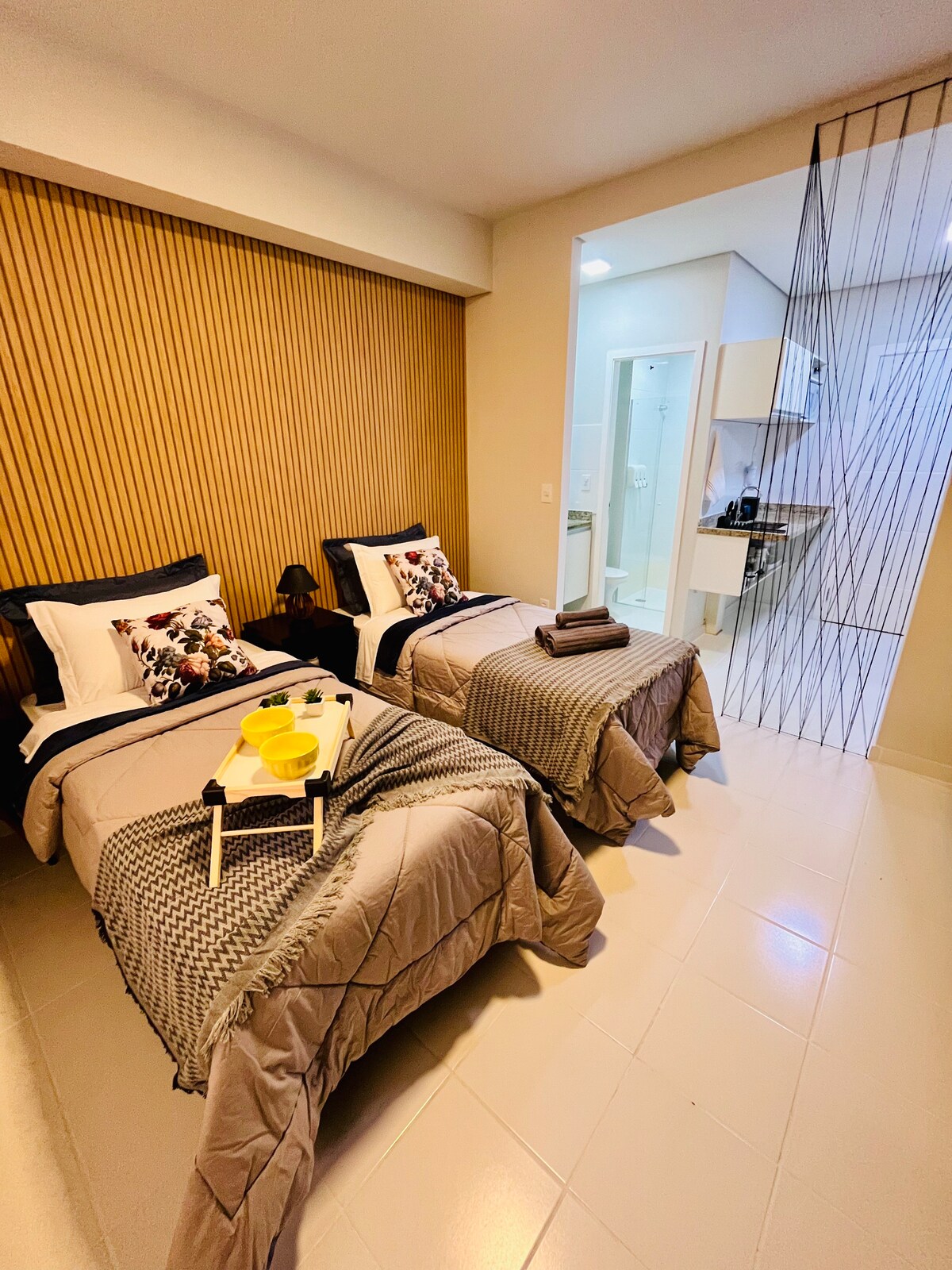 Bu unikal məkanın öz üslubu var. Wi-Fi, ağıllı televizor, kondisioner, Aleksa, mətbəx ləvazimatları, qəhvə mağazası, su filtri, fen, ütü və rahatlığınız üçün hər şeylə tamamlanmış studiya. 1 150-179 SM-LİK ÇARPAYI VƏ YA 2 NƏFƏRLİK ÇARPAYI SEÇƏ BİLƏRSİNİZ. Üzgüçülük hovuzu, lift, parkinq, camaşırxana, 24 saat konsyerj, təhsil və ya görüş otağı, qurman məkanı və ev heyvanı məkanı kimi ümumi məkanlardan zövq alın. Əla mövqe, Hosp. Sananın qarşısında Fransisko, Fac. UNAERP və Forum.