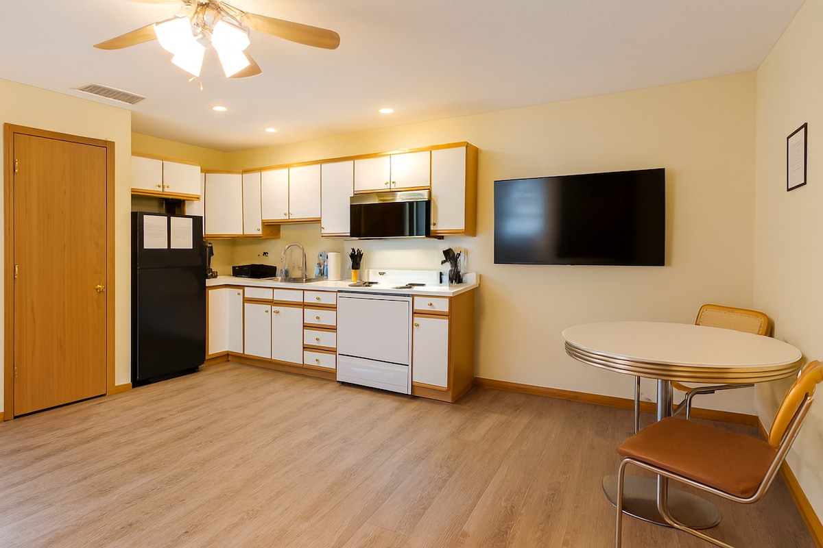 Bu, ayrıca vahiddir, lakin bu elana əlavə edilmiş QONAQ OTAĞI mövcuddur (Air BnB-də də mövcuddur) Lakin paylaşılan məkanlar yoxdur. Hər bir elanın ayrıca girişi var. Alış-veriş, restoranların yaxınlığında. 1Bedroom-2 queen çarpayı-1bath kabel/Wi-Fi, ehtiyatlı wi/ qəlyanaltılar və imkanlar. Açar kilid qutusu girişi, Paltaryuyan maşın/quruducu. Divan əsasda açılan xüsusiyyət ilə aşağı qatlanır və ya fəaliyyət göstərmək üçün bizimlə əlaqə saxlayın.