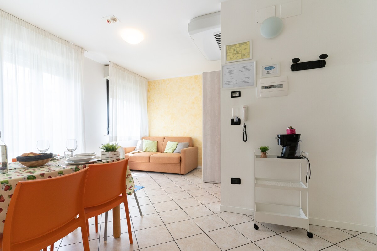 Rimini çimərliyindən daş atma və Rimini və Rimini və Riccione arasındakı Metromare Coast avtobus xətti dayanacağından 20 metr məsafədə yerləşən Residence-də rahat mənzil. Mənzil Yataq otağı, divan çarpayısı olan qonaq otağı, təchiz olunmuş mətbəx, duş kabinəsi olan hamam otağı və balkondan ibarətdir. Qonaqlama yerində pulsuz Wi-Fi, döşəkağı-dəsmallar, dəsmallar, mətbəx ləvazimatları və s. var.