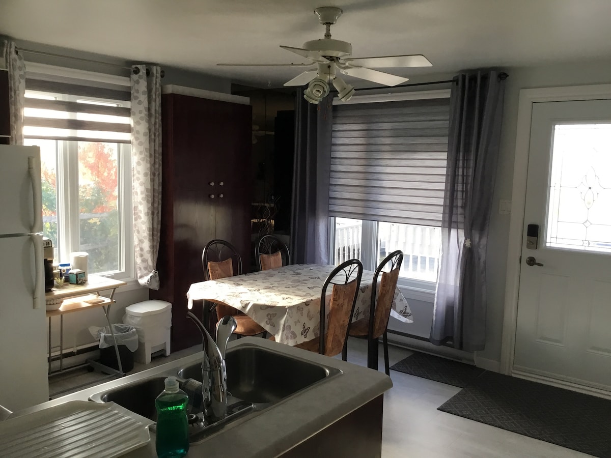 Rimouski şəhərinin mərkəzində yerləşən bu turniket mənzili işçilərə, tətilçilərə və ya tamamilə yeni mühitdə yerləşmək istəyən hər kəsə sərfəli qiymətə ev sahibliyi etmək üçün mükəmməldir! Məkana hətta yaxşı yemək hazırlamaq istəyənlər üçün mətbəx əşyaları da daxildir. İnklüzivliklər bunlardır: KEURIG qəhvə maşını, mikrodalğalı soba başlığı, portativ mətbəx adası, Wi-Fi, peyk televiziyası və s... Bron etməkdən çəkinməyin.