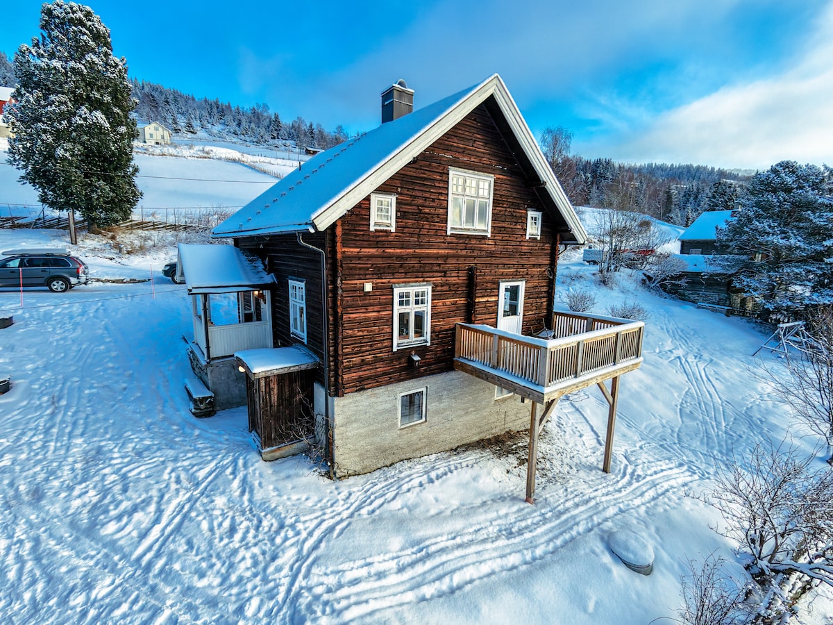 Small farm Nyfløt Lille in Losna with roots from the 18th century in a fantastic location - at the same time you can enjoy being alone and the view 2 miles beyond Gudbrandsdalen. Large kitchen, 2 living rooms, 5 bedrooms, sauna, Jacuzzi and huge outdoor area are just some of the qualities that you can use. Here you are close to all the major alpine resorts, cross-country skiing (6 km), fishing opportunities and Hunderfossen family park. The farm is furnished with space for the extended family.