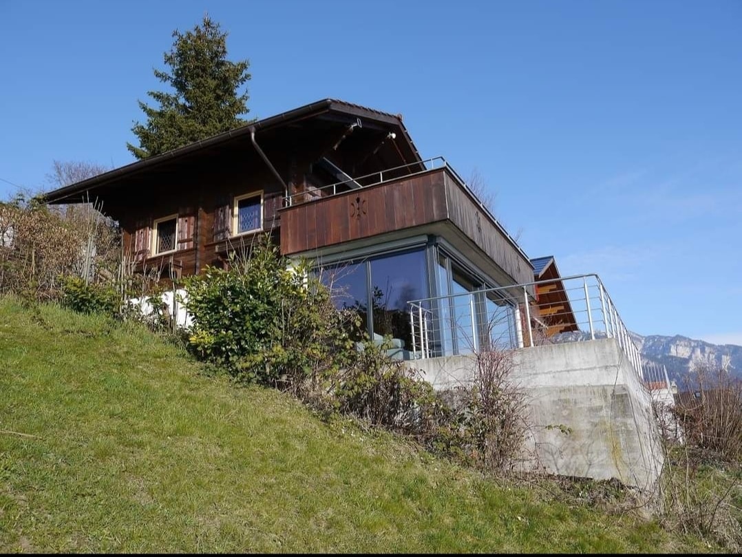 Bernese Oberland bölgəsində dəniz səviyyəsindən təxminən 900 metr yüksəklikdə İsveçrə dağları və Thun gölünün ecazkar mənzərəsi olan dağ evi qapalı bağ və 2 böyük panoramik terras 1 yüksəklikdə barbekü üçün yeyə biləcəyiniz, səhər yeməyi yeyə, möhtəşəm mənzərəyə heyran olan nahar edin, eləcə də yemək otağında içəridə salon stullarından və musiqi ilə jakuzidən zövq ala biləcəyiniz yataq otağı səviyyəsində